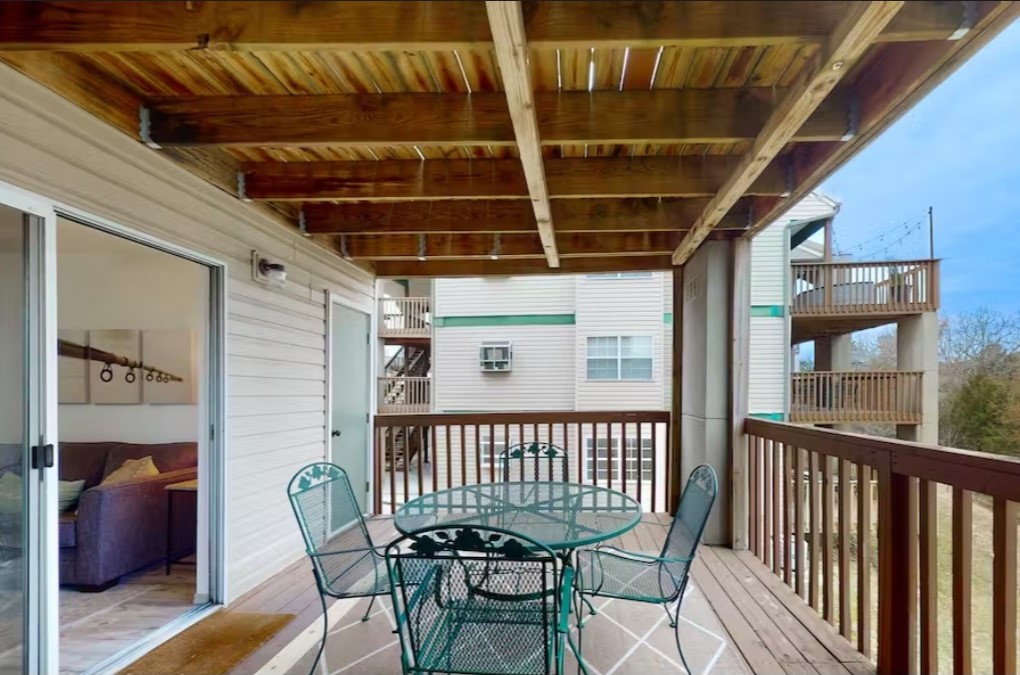 2 Bedrooms • 2 Bathrooms 2 Baths • Sleeps 1-6LOCATION, LOCATION, LOCATION!! This is the closest resort to SDC, sits right on Table Rock Lake and is just minutes from the strip! Welcome to our trendy, newly remodeled WALK-IN condo in Branson, right next to SDC and sits on Table Rock Lake! With 2 bedrooms, including a king master with an en suite bathroom, a queen in the second bedroom, and a queen sofa bed, our spacious condo can sleep up to 6 guests, making it the perfect retreat for families or groups of friends. We even provide a pack-n-play for our littlest guests. Come relax and enjoy all the comforts of home with a touch of luxury in our beautiful lakeside condo. Step outside on your large private deck and enjoy stunning views of Table Rock Lake. Sip on your morning coffee while taking in the serene nature views or night cap with a glass of wine as you take in the serenity of the nature all around you. The living room is great for lounging around after a day of exploring the area. You can relax on the comfortable couch while watching your favorite shows on the large flat-screen TV or gather around the table for a board game competition with the kiddos. You'll also have access to high-speed Wi-Fi throughout the condo. The full kitchen is fully equipped with everything you'll need to prepare delicious meals during your stay. You'll find modern appliances, plenty of cookware, dishes and utensils to serve your meals. Our resort also has plenty of centrally located amenities for you to enjoy including a seasonal swimming pool and hot tub (typically open Memorial Day through Labor Day - please ask for exact dates), a sports court and a playground. The sports court is perfect for a friendly game of basketball, pickleball, shuffle board or tennis. Or take a step into nature's playground and immerse yourself in the beauty of the great outdoors with a peaceful nature walk through the woods or a picturesque stroll down to the water's edge. Escape to a tranquil oasis at our pebble rock beach on the lake, where you can soak up the sun, reel in a catch, or simply float your worries away. Our resort is also located right next to Silver Dollar City, the area's most popular theme park! You'll have easy access to all the fun and excitement of the park, and you can come back to your comfortable and stylish condo at the end of the day. Experience the ultimate convenience and avoid the traffic that can often back up for miles when entering SDC from Branson proper. Calling all boating enthusiasts! Just down the road from us lies Indian Point Marina, your one-stop-shop for all things boating. From boat rentals to slips and even jet skis, they have everything you need for an epic day on the water. Come explore the beauty of the lake from a new perspective today! Indian Point Marina even has a floating restaurant! Branson has it all! Our condo is conveniently located near Highway 76, also known as the entertainment strip, with over 40 theaters showcasing world-class performances. After a day of shows, explore the many restaurants, malls, and mini golf courses, or take a scenic horseback ride. Golf enthusiasts can enjoy a round at the stunning Stonebridge Golf Course, just 2 miles away. And don't miss the spectacular Sight and Sound Theatre, featuring the Biblical story of ‘David’! There's something for everyone in Branson! We look forward to welcoming you to our little home away from home on Table Rock Lake. Book your stay with us today and get ready for an unforgettable vacation experience in Branson, Missouri!
